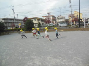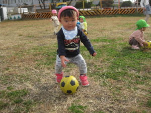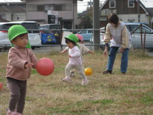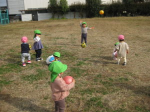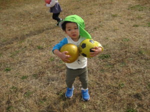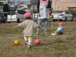 カスタネット組さん・スズ組さんは、ボールを持って新畑子ども広場に行きました。