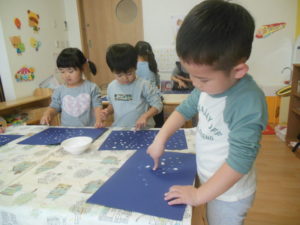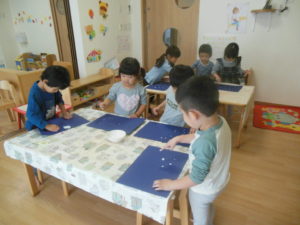 園に帰った後、ピアノ組さんは、指スタンプをしました。
