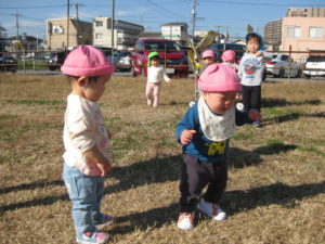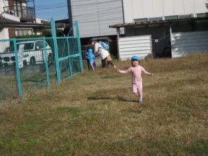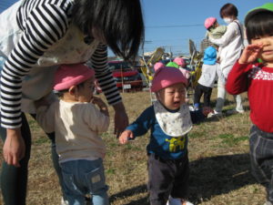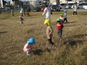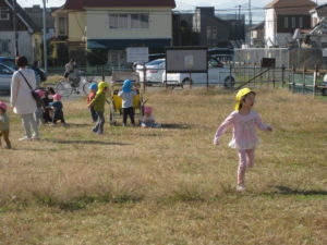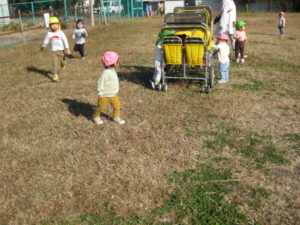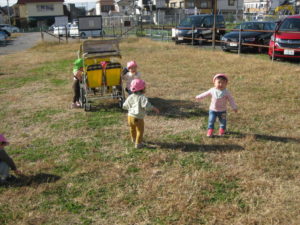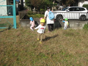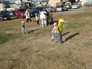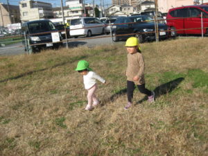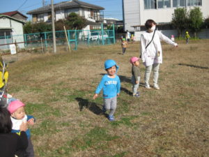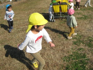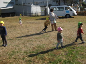 スズ組さんと二人のカスタネット組さんのお友達も先生と手をつないで歩いていましたよ!