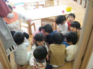 子どもたちは保育士の指示で一カ所に集まり静かに避難して待機していました!