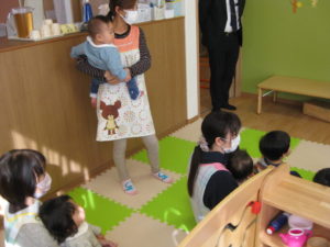 朝の室内遊びのカスタネット・スズ組さんの様子です!