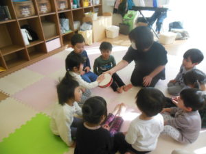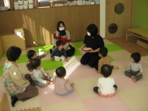 カスタネット組さんとスズ組さんの、リトミックの時間です。