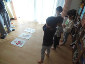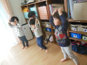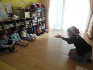 クリスマスの曲に合わせてトナカイやサンタさんになって踊りました。