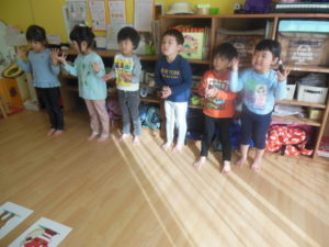 今日は英語の日、カスタネット組スズ組さんの様子です!
