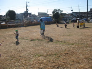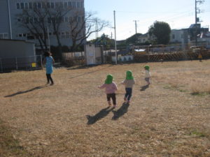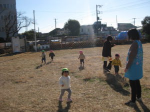 広い場所でのびのびとかけっこをして遊びました。