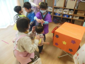小さいお友だちは、はじめは何が始まるのか分からず泣いてしまったお友だちもいましたが、