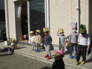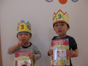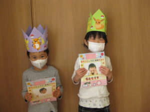 最初にクラスごとお誕生日の子は前に出てお誕生日カードとかんむり👑のプレゼントをもらいました。