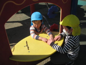 お友達と追いかけっこやベンチに座って休憩をしたり。