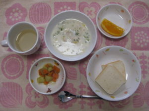 パンだったので子どもたちは大喜びですぐに食べ終えていました。