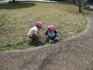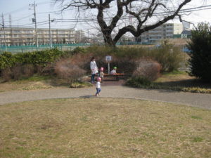 公園に着き、安全の確認をした後で遊ぶのですが何故か直ぐにベンチに座り休憩