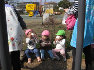 水分補給をして戻り園庭遊びをしました!新しいボールがあり大はしゃぎでした😊