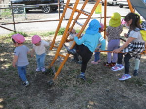天気が良くたくさん身体を動かしたので汗をかく子どももいました。