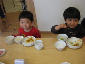 朝から長い時間園庭遊びを楽しんだ子どもたちはとても満足気でした!