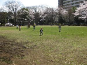 広いグランドで走ったり木の下のどんぐり拾い集めたり、