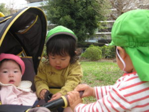 ベビーカーに乗っているカスタネット組のお友だちをあやしてくれました🎵