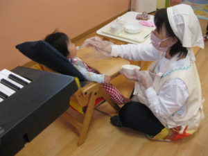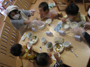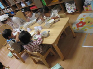 お部屋で午前を過ごしたあとは給食の時間です。