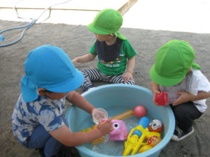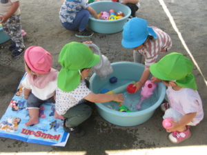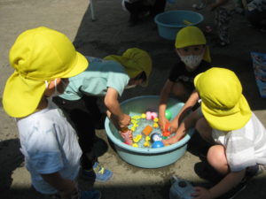 夢中で水遊びをしたり思い思いに楽しんで遊びます。