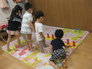 風船遊びもしました。投げるとふわふわ落ちてくるね!