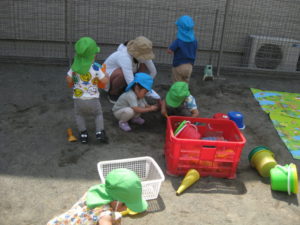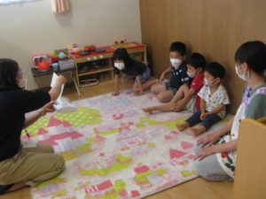 スズ組・タンバリン組は園庭で遊んでから英語に参加しました😊