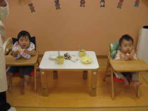 お散歩に行く前に朝おやつの時間。