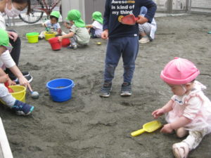 園庭では砂遊びを楽しんでいました。