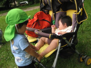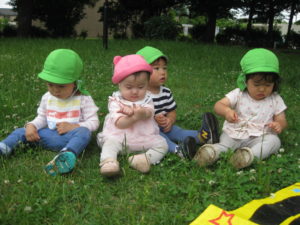 カスタネット組さん・スズ組さん・タンバリン組さんは、新生公園にお散歩へ行きました。