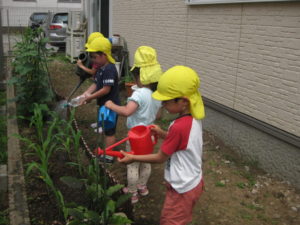 ピアノ組さんは帰ってきてからお野菜の水あげも忘れません。