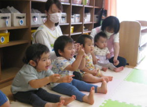 そんな暑さの中でも子ども達は元気いっぱいで登園してきてくれました(^^♪