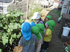 スズ組、タンバリン組さんは、アルペジオ農園のきゅうりの収穫に🥒