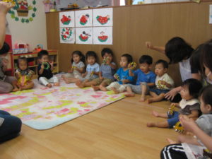 今日はボールも出てきてお隣の友達にピアノに合わせて「どうぞ」とニコニコ笑顔