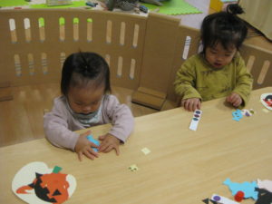 スズ組さんは10月の製作、シールを夢中で貼っていました。