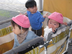 戸外に出るとニコニコ笑っていました。