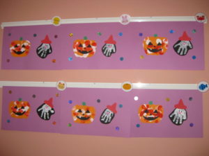 カスタネット組さんの10月の製作はかぼちゃおばけとおばけです。