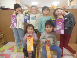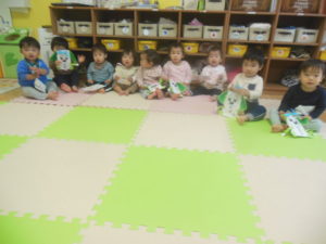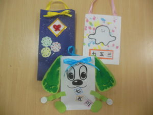 由来のお話を聞いたり、各クラスの七五三袋の紹介がありました。