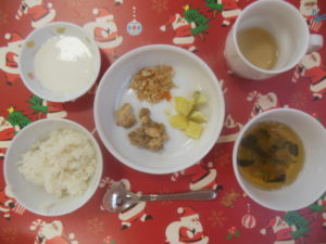 ご飯.豆腐の肉みそあんかけ.切り干し大根の煮物.ふかし芋.すまし汁(小松菜.えのき)ヨーグルトでした😊