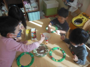 ピアノ組では、クリスマス製作でリースを作りました🎵