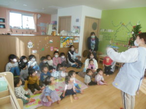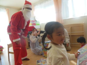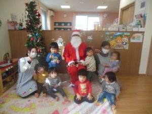 子ども達の歌声に引き寄せられてサンタさんが来てくれました!