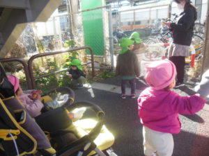 タンバリン組・ピアノ組は新生公園、カスタネット組・スズ組は駅までお散歩に行きました。
