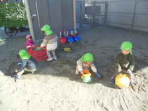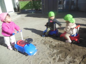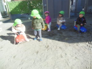 園庭では滑り台やコンビカー、お砂場遊びをしました。