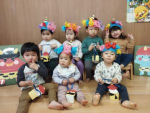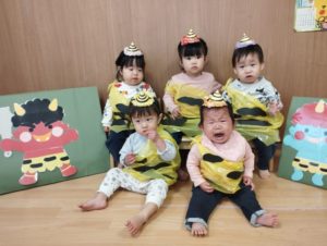 びっくりして泣いてしまうお友だちもいましたが、みんなでおにはそとー!!!と大きな声でやっつけると、あわてて逃げていきました。