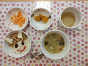 鬼ご飯・かぼちゃの胡麻和え・節分汁・みかん