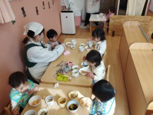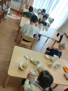 野菜は、苦手と言って最初に減らす子もいましたが、ひと口食べてみると思っていたより食べやすかったようでおかわりしている姿も見られました。