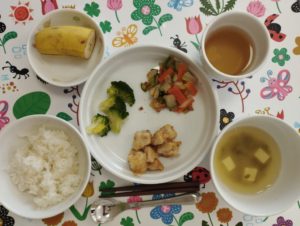 [ごはん、カジキの照り焼き、白菜と人参のおかか和え、ゆでブロッコリー、みそ汁(豆腐、わかめ)]でした🥄
