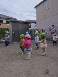 こんにちは😊早いもので、もう3月になってしまいました。🏵️今日は、リズム体操がありその後は、園周辺にお散歩に行きました😸カスタネットのお友達は歩いて行く子と、カートで行く子とですが、みんなで楽しくお散歩出来ました🥰