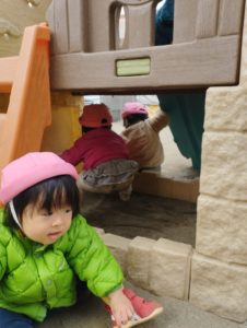 滑り台や、滑り台の下に皆で入り、秘密基地にでも、居るかのようにあそんでました✌️
