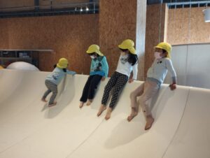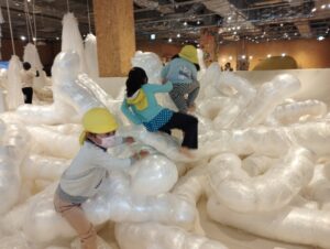 大きなお皿ゾーンでは風船をラップで巻いたものがあり、登っては飛び降りてと