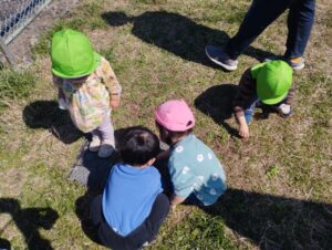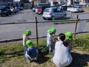 春が近いので草花が咲いていてみんな興味津々✾