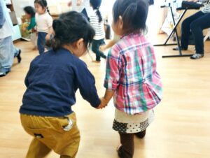お友達に「一緒に手を繋ごう」と言って