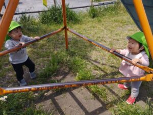 滑り台の下でお友達と「いないいないばあ」で、仲良く遊びます⭐