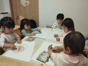 みんなとても集中していて、「ピンク!」「あお!」と好きな色を声に出して思い思いに絵を描いていました!